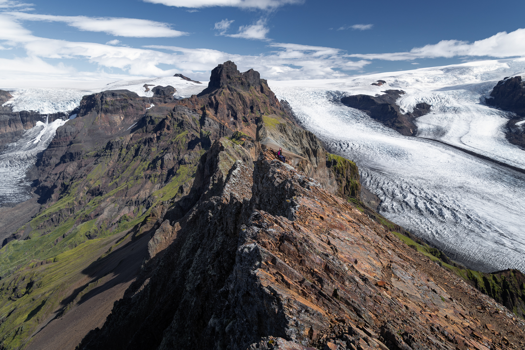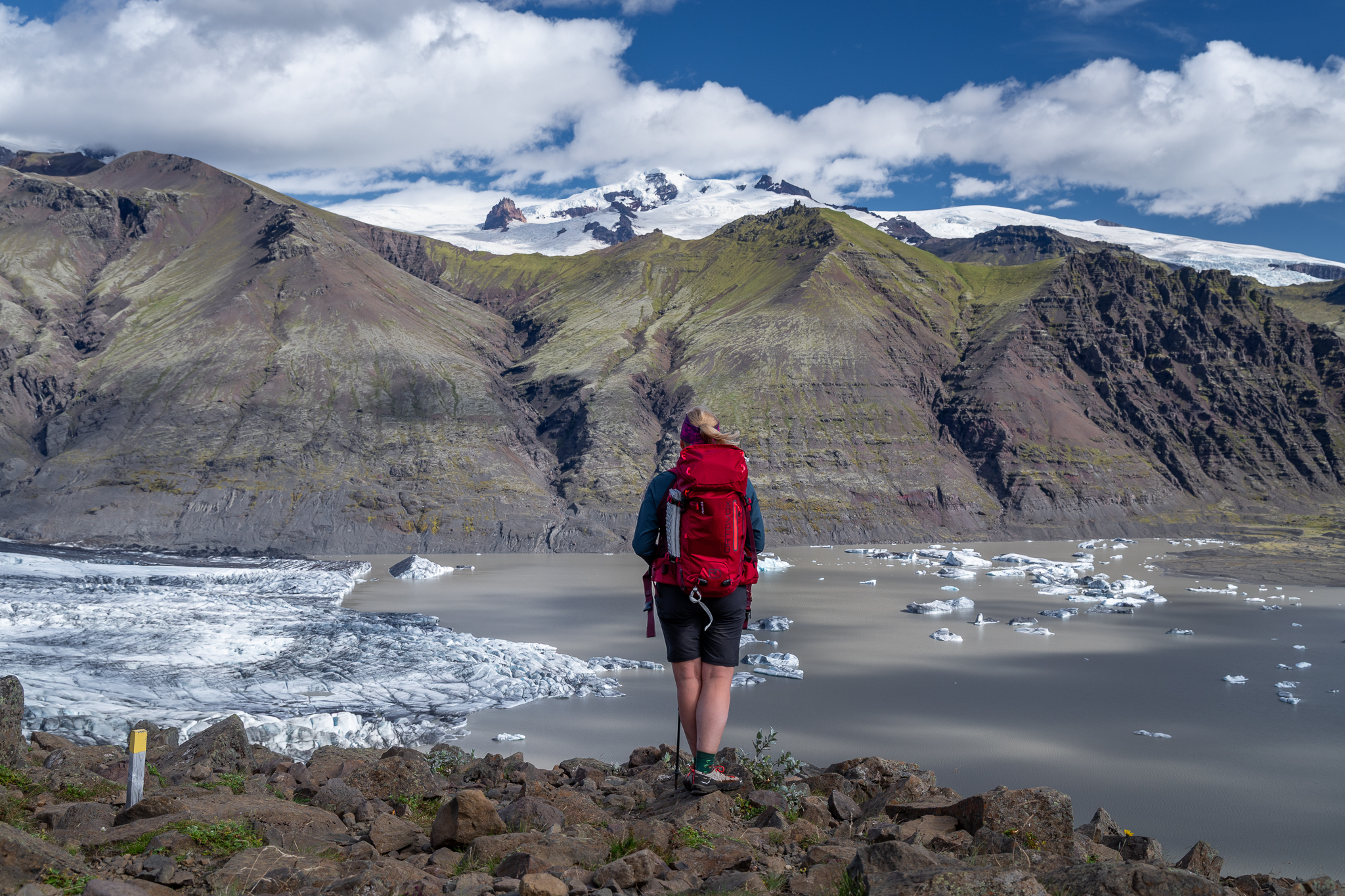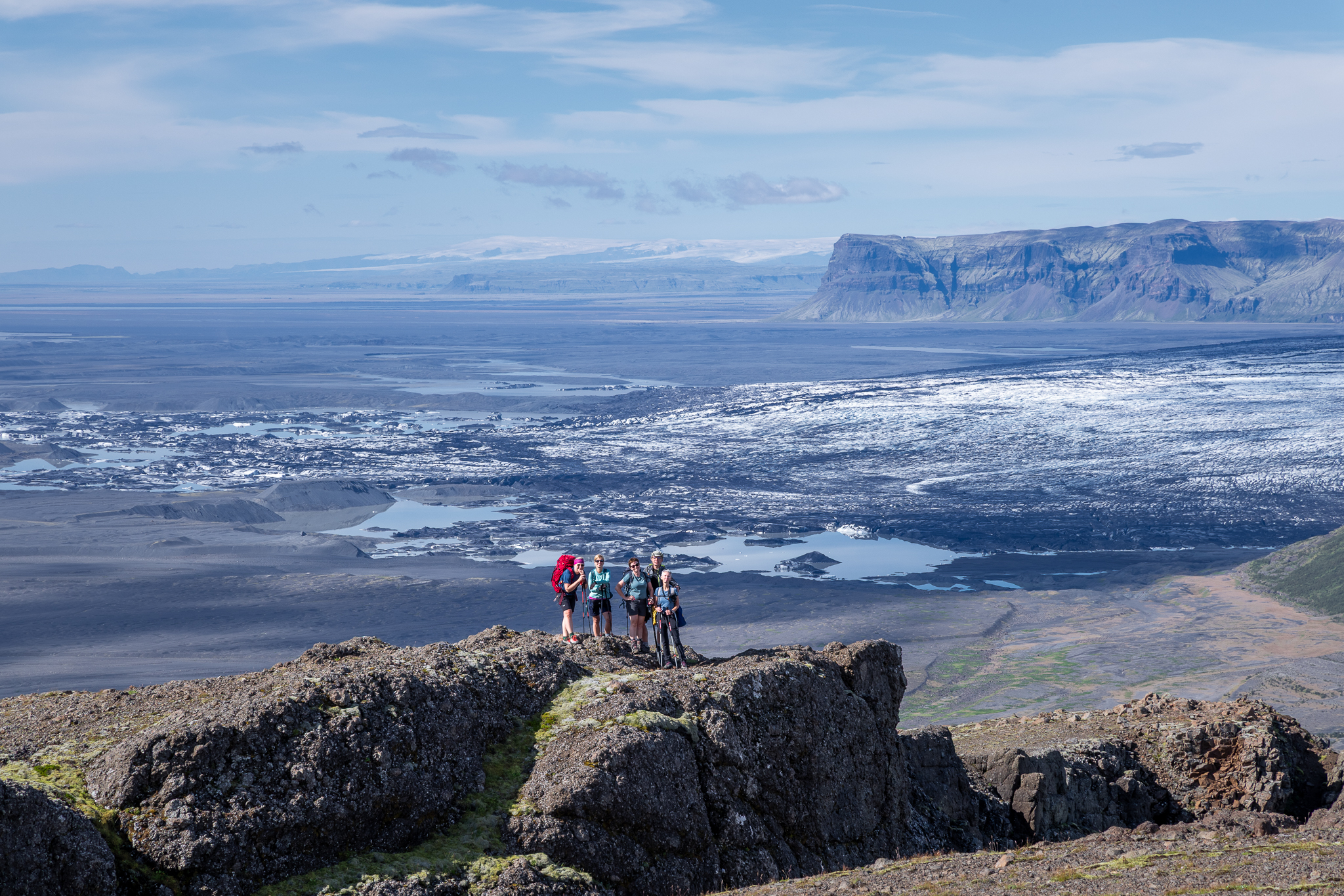 To niewysoki, mierzący 1126 metrów wierzchołek, który wygląda bardzo niepozornie, jednak jest jedną z najlepszych wycieczek trekkingowych całej Islandii! Nasza grupa przeszła pętlę, zaplanowaną w taki sposób, aby spektakularne widoki zostawić na sam koniec. I to był strzał w dziesiątkę! Poza tym dopisała także pogoda – było bardzo, bardzo ciepło! Patrząc na prognozy zaleciłem zabranie krótkich spodenek do plecaków, jednak nie spodziewałem się, że ubierzemy je już po 20 minutach marszu, szczególnie że zegarek nie wskazywał jeszcze ósmej rano. To był niesamowicie miły i ważny dodatek, tak samo jak bezwietrzna aura. Wycieczka zajęłam nam 8,5h, gdyż co chwila delektowaliśmy się przepiękną i rozległą panoramą na islandzkie góry, lodowce, aż po sam atlantyk. Czy można lepiej rozpocząć zwiedzanie? Nie odpowiem jednoznacznie twierdząco, ale na pewno byłoby to wyjątkowo ciężkie zadanie.