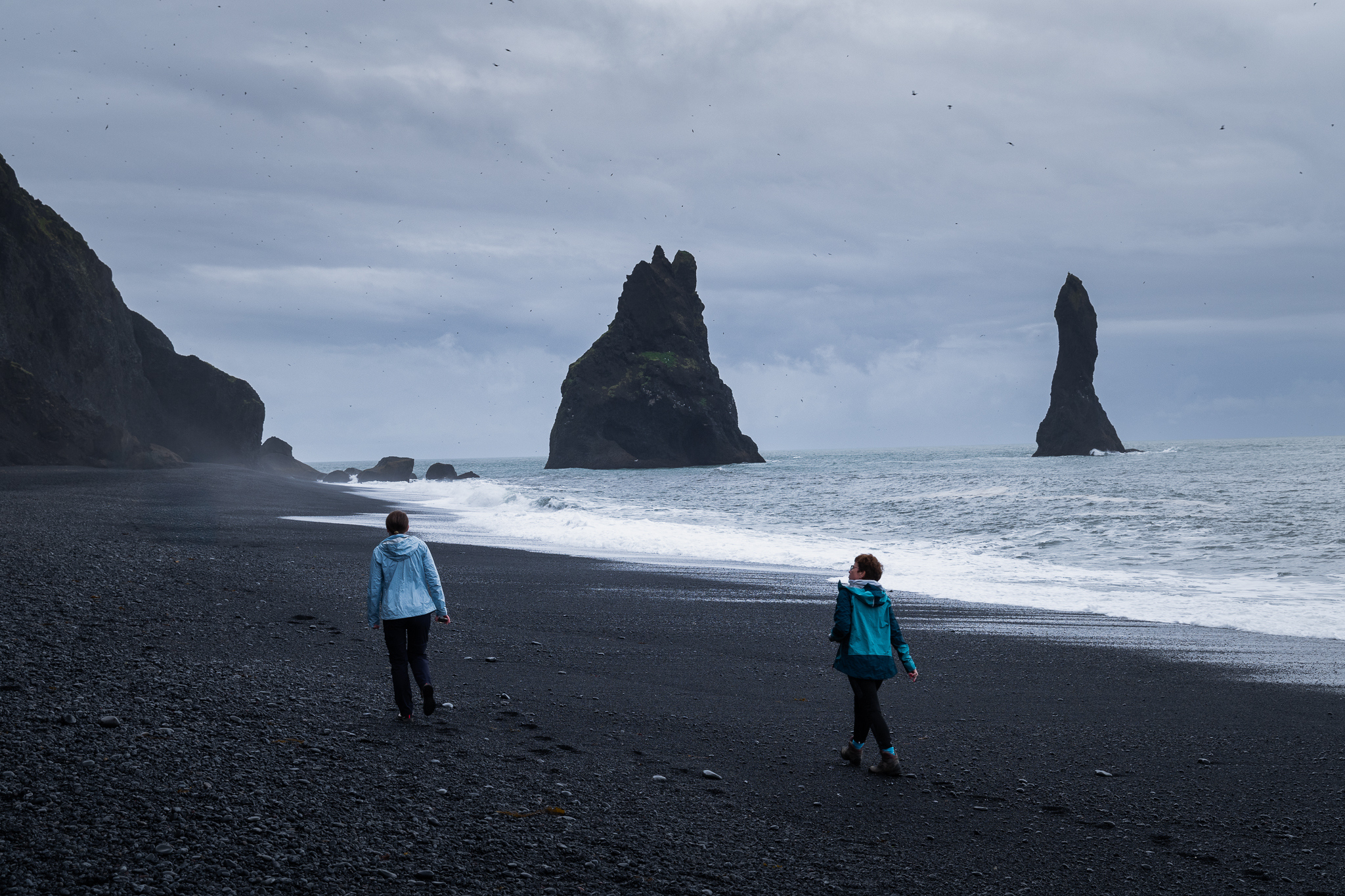Po powrocie do Vik zrobiliśmy krótką przerwę na restaurację, zakupy spożywcze i odpoczynek, aby następnie podziwiać maskonury! Te ptaki pojawią się na Islandii wiosną i spędzają na niej czas mniej więcej do końca sierpnia. Są wręcz wizytówką regionu i powodem dla którego tak wiele osób przybywa tutaj o tej porze roku. My na dobry punkt nie mieliśmy daleko, raptem 15 minut jazdy busem. Ilość maskonurów dopisała, choć w pierwszym punkcie nie było ich wiele, to w drugim na pewno zobaczyliśmy grubo ponad sto sztuk! To naprawdę imponujący wynik, szczególnie że mogliśmy podziwiać je w ciszy i spokoju. Większość turystów zna tylko to pierwsze miejsce i pomimo braku ptaków, tam skupił się ruch turystyczny.
