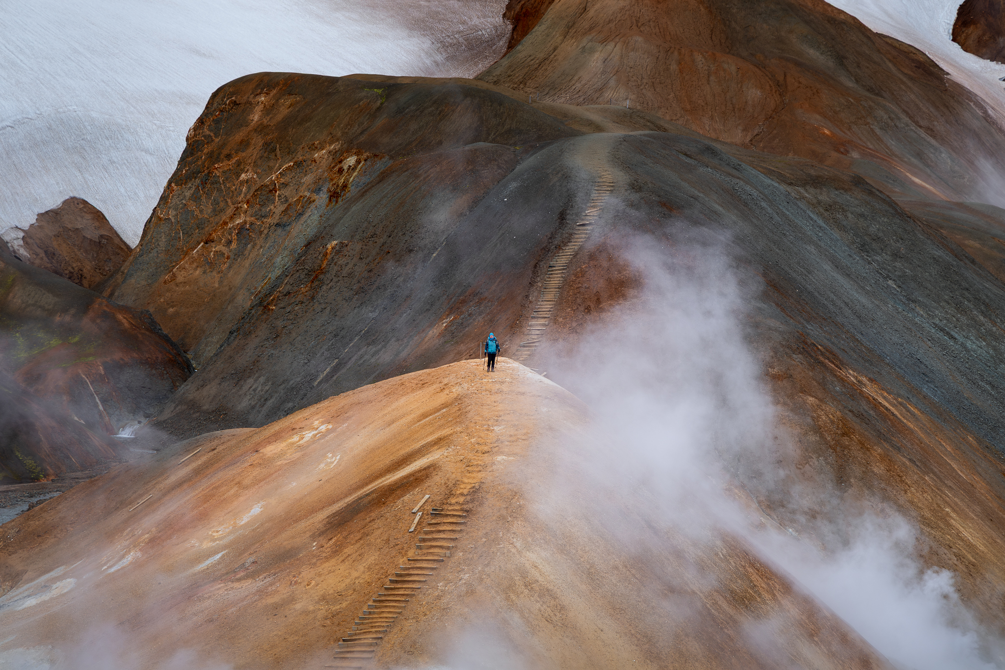 Góry tęczowe są naprawdę wyjątkowe. Zbudowane są z ryolitu, czyli skały wulkanicznej, która w połączeniu z gazami i źródłami geotermalnymi nabrała przeróżnych barw. Oczywiście to bardzo skrócona historia, jednak pozwala wyobrazić sobie zachodzące tam procesy. Biały, czerwony, zielony, niebieski i wiele więcej – paleta barw jakby nie miała końca, a gdy zaświecą pierwsze promienie słońca lub nadejdzie bezchmurne popołudnie, całość wygląda olśniewająco. Dobrze prezentują się także w trakcie tzw. moody warunków – to po prostu trzeba zobaczyć!