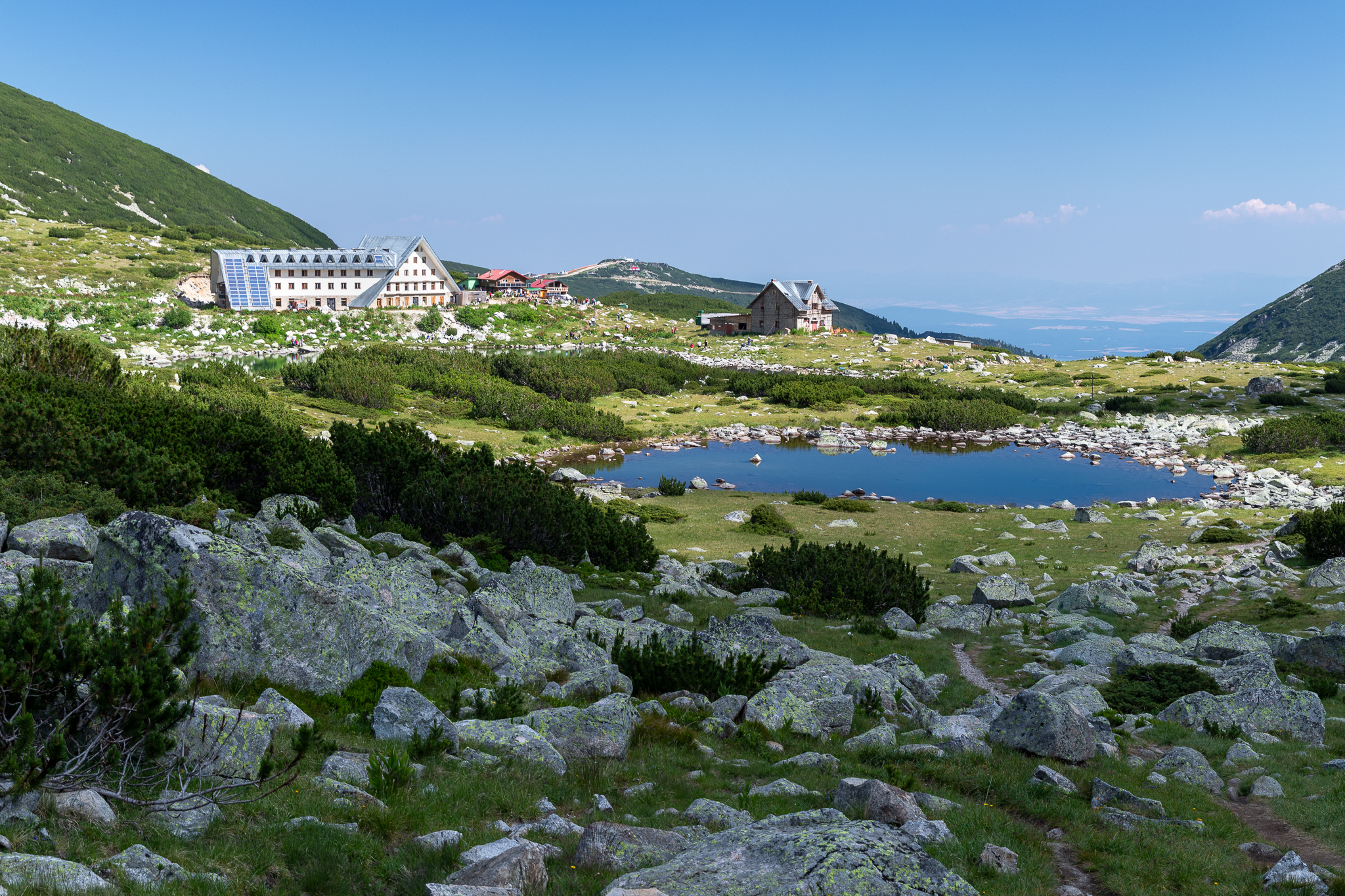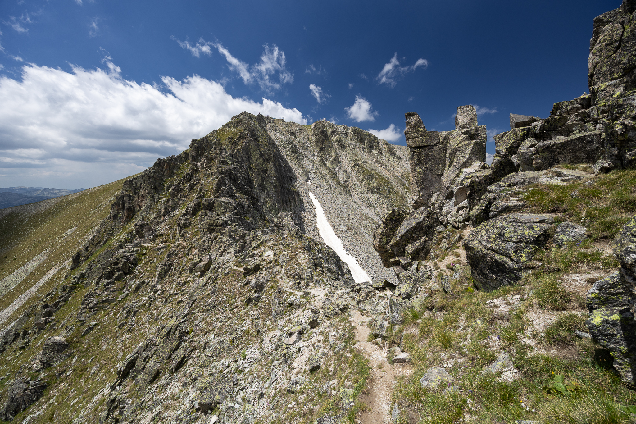 Ostatnim etapem naszej podróży było wejście na Musałę, czyli najwyższy szczyt Bułgarii oraz całych Bałkanów. Wierzchołek ten wznosi się na 2925 m n.p.m.! Aby ułatwić sobie wejście postanowiliśmy wjechać kolejką i następnie szlakiem wejść na szczyt. Trasa ma około 7,5 km oraz 600 metrów sumy podejść. Zrobiła na nas duże wrażenie, jednak uznaliśmy, że powrót tą samą trasą to będzie dla nas za mało. Zanim udaliśmy się w drogę powrotną, zdobyliśmy jeszcze Małą Musałę, dzięki czemu skompletowaliśmy wszystkie szczyty Bułgarii powyżej 2900 metrów, a jest ich łącznie pięć. Do kolejki zeszliśmy pozaszlakową, ale naprawdę prostą granią. Co najważniejsze byliśmy na niej praktycznie sami, co jakiś czas mijaliśmy się tylko z dwójką rodaków. To była miła odmiana w porównaniu do głównego traktu turystycznego, który tego dnia był bardzo zatłoczony. Słów kilka poświęcę jeszcze Małej Musale. Na ten wierzchołek oficjalnie nie prowadzi żaden znakowany szlak, choć ścieżka jest dobrze widoczna. Należy jednak rozsądnie mierzyć siły na zamiary. Trasa zajmuje około 30 minut w jedną stronę i porównać ją można do Orlej Perci. Występują ułatwienia, a ścieżka jest bardzo wąska – najmniejszy błąd oznacza bardzo duże konsekwencje, dlatego nie jest to wariant dla wszystkich!